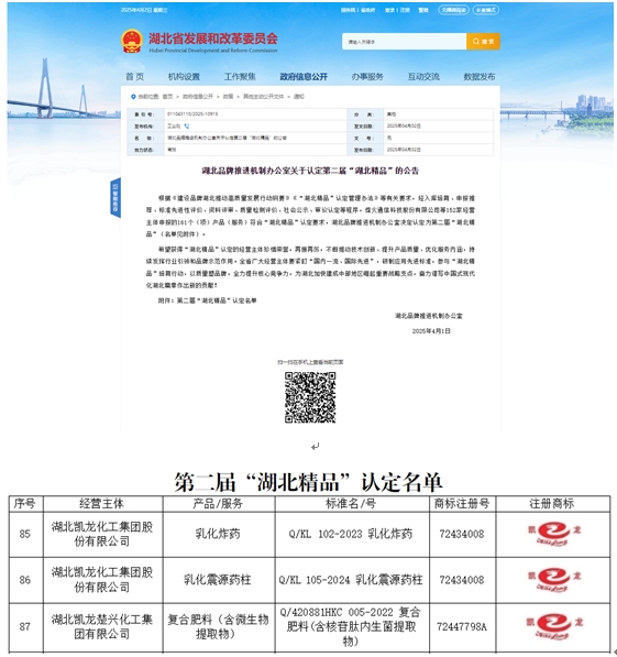 “湖北精品”認(rèn)定是湖北省為推動質(zhì)量強(qiáng)省、品牌強(qiáng)省建設(shè)而開展的重要活動,旨在培育和打造一批具有湖北特色、代表湖北質(zhì)量水平的高端品牌。此次認(rèn)定過程嚴(yán)格,經(jīng)過入庫培育、申報推薦、標(biāo)準(zhǔn)先進(jìn)性評價、資料評審、質(zhì)量檢測評價、社會公示、審議認(rèn)定等多個程序,最終確定認(rèn)定名單。公司乳化炸藥、乳化震源藥柱和復(fù)合肥料(含核苷肽內(nèi)生菌提取物)能夠脫穎而出,充分證明了凱龍品牌實力和行業(yè)地位。